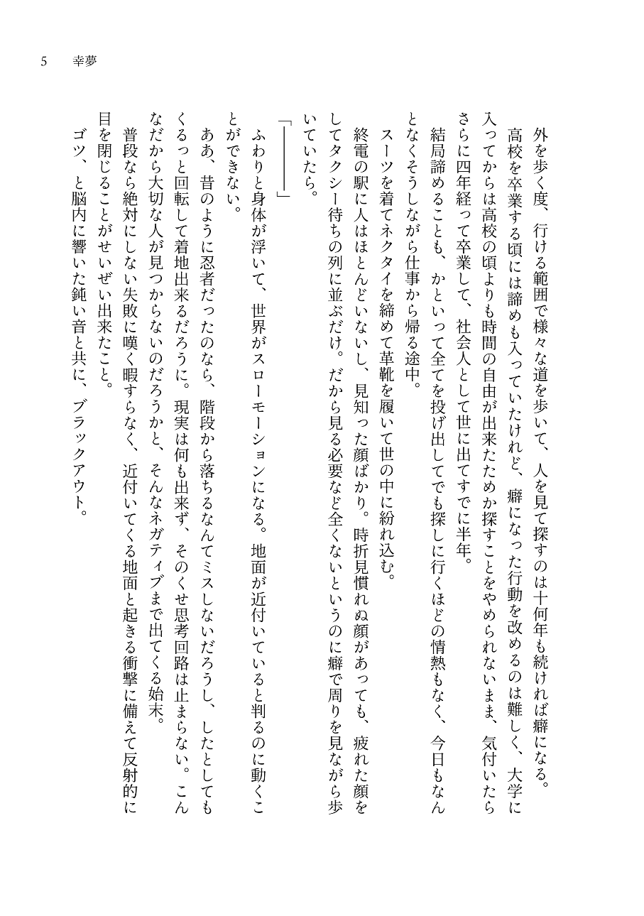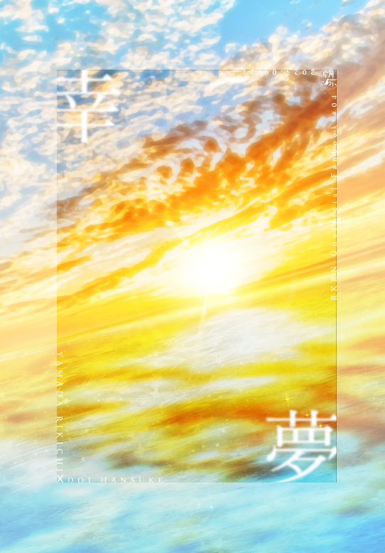 幸夢 忍たま乱太郎 山田利吉×土井半助 2025/09/21(日) TOKYO FES Sep.2025 B6 P.130(本編)+P.42(別冊) 成人向け|イベント価格:1,700円 【本編】前世の記憶を持つ現代転生利土。現代利吉が過去へ。過去利吉が現代へやってきて2日間をそれぞれの場所で過ごす物語。 【別冊】本編後の現代利土二人の物語。過去の自分たちと交わったことで生まれた、理解と納得、その結果。 組版01 02 サンプル 完売